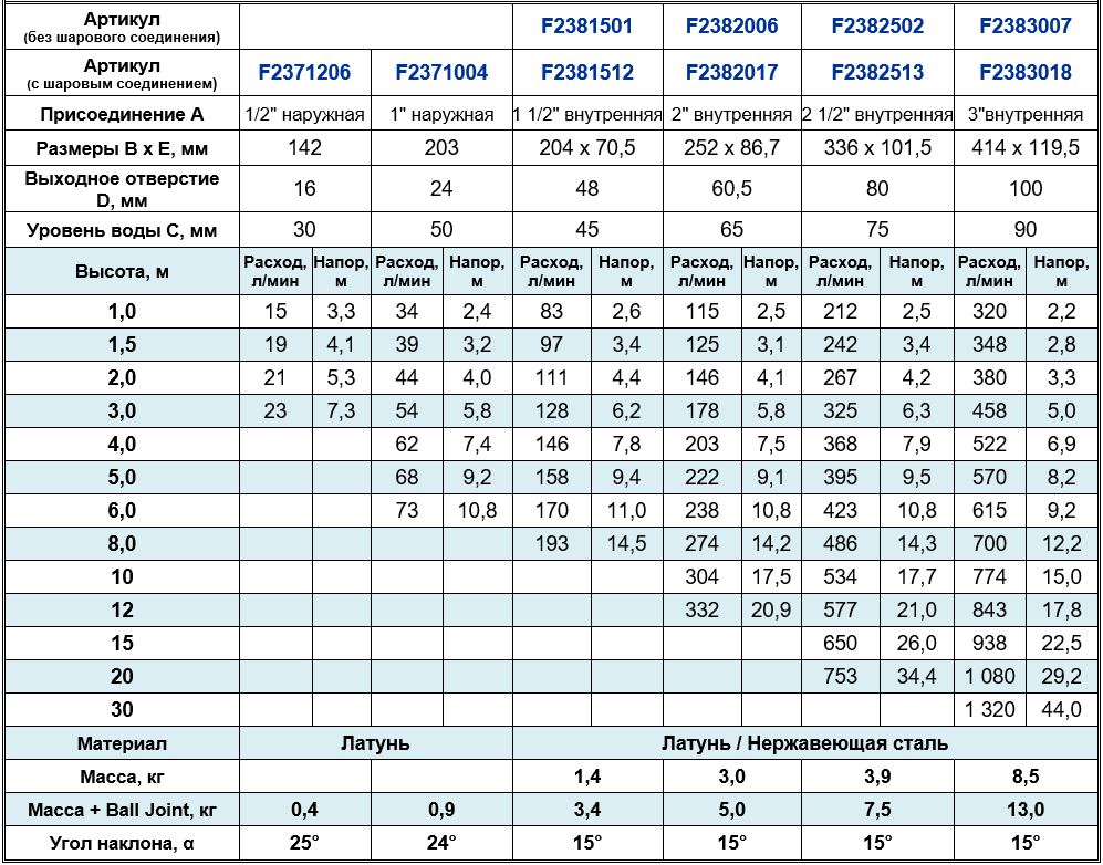 Высота струи max, м
