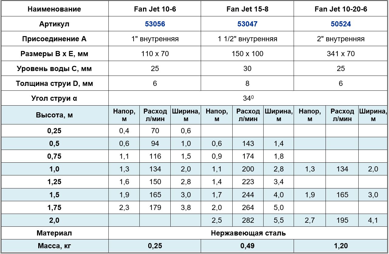 Фонтанная насадка Fan Jet 10-6 E
